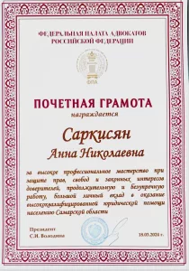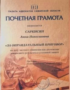 Для каждого правоприменителя важно признание его заслуг и успехов на стезе защиты и представительства прав и законных интересов граждан и юридических лиц. Это мотивирует, дает уверенность в правильно выбранной жизненной позиции, доверителям дает возможность убедиться, что выбранный адвокат эффективно, добросовестно, скрупулезно, честно, достойно, ответственно и внимательно выполняет свои обязательства. Я, адвокат Саркисян А.Н., в своей адвокатской деятельности руководствуюсь принципом: «Важна победа, а не участие!»